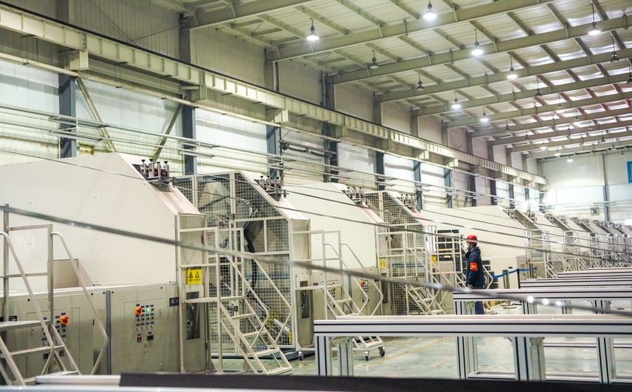 工人在吉林化纤集团吉林国兴复合材料有限公司拉挤车间工作(1月31日摄)。新华社记者 颜麟蕴 摄