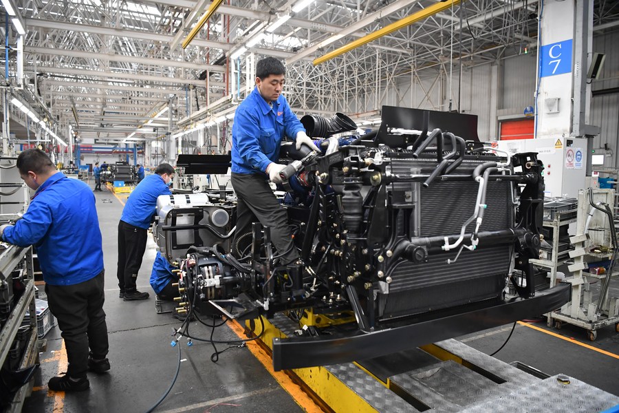 2月2日,工人在陕汽控股集团重卡总装车间装配零件。新华社记者 邵瑞 摄